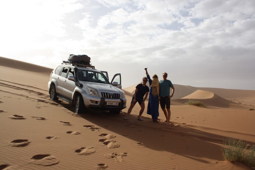 Na nog een laatste klim op een van de duinen ruimden we alle spullen weer op en begonnen we aan de terugreis van anderhalf uur door de woestijn. Eenmaal terug op de camping ontdeden we ons van het meeste stof, namen afscheid van de gidsen en vertrokken weer richting Zagora om daar te lunchen en te tanken.