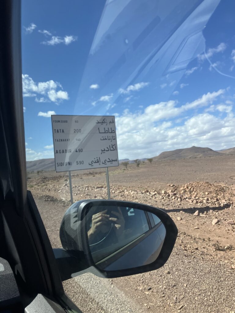 De rit van Zagora naar Tata leidt ons door oneindige gevarieerde landschappen van verschillende soorten bergen en rotsen afgewisseld met hier en daar een zandduinen en tal van oases. De airco houdt de temperatuur in de auto aangenaam maar als we uitstappen krijgen we een klap van rond de dertig graden in het gezicht.